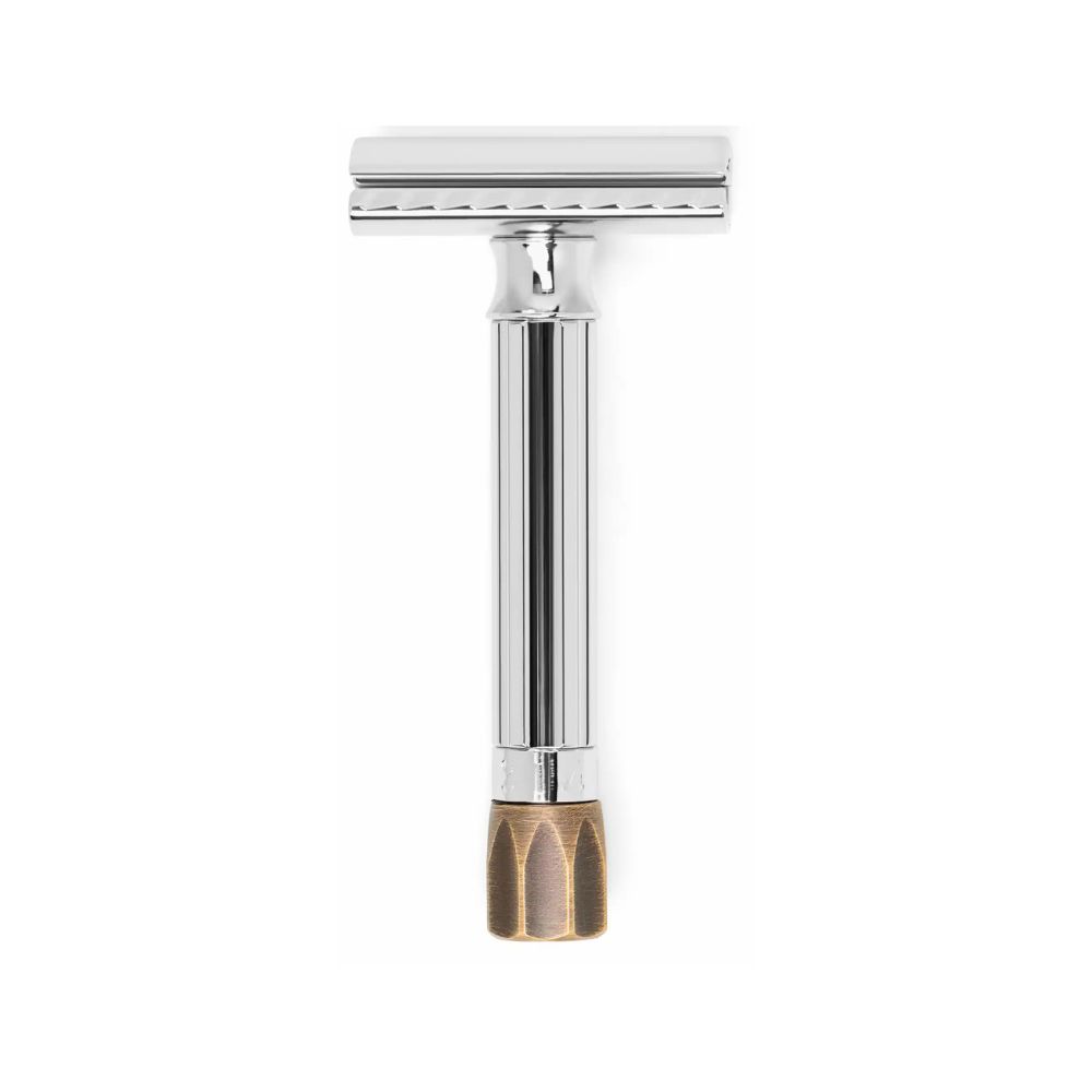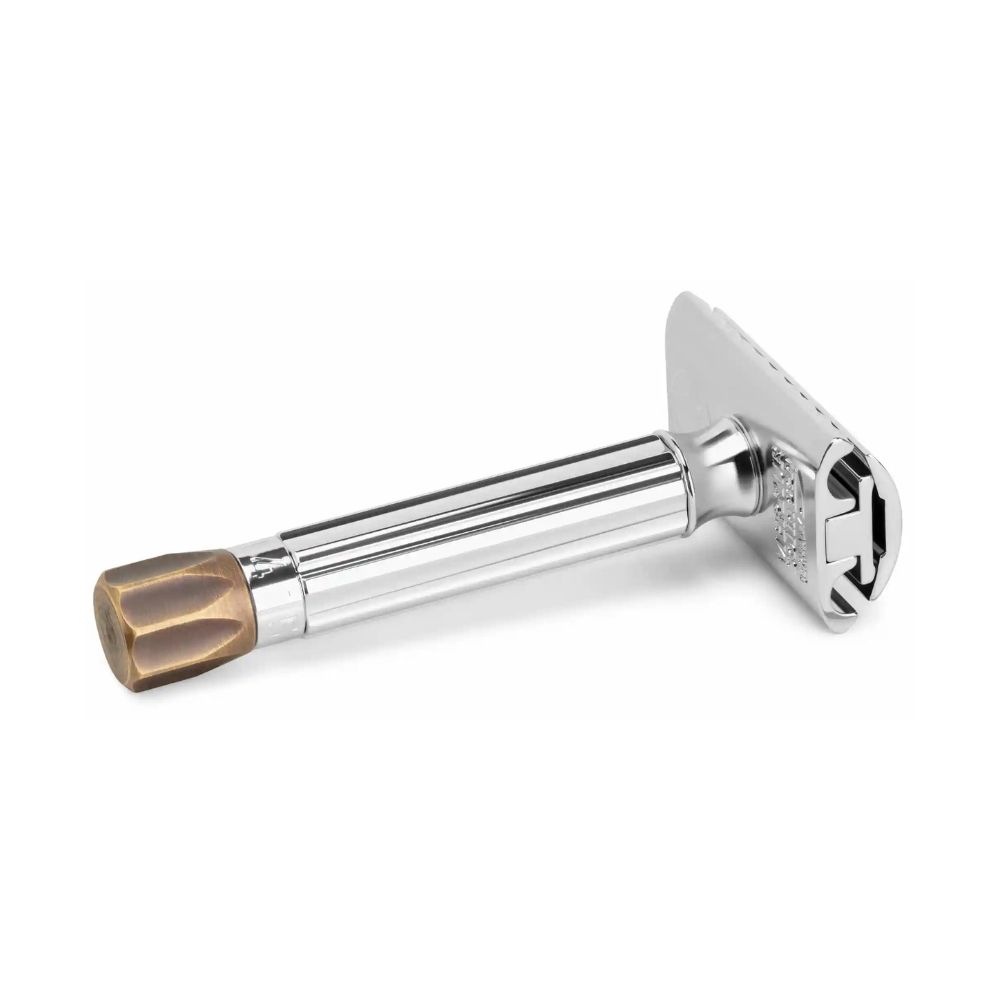 Merkur – Rasoir Progress 500 chrome brillant avec pommeau en laiton antique